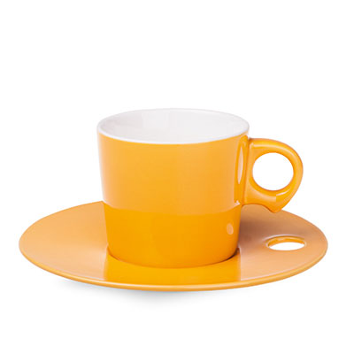 Finezyjna filiżanka o cylindrycznym kształcie z nietypowo uformowanym, okrągłym uchwytem. W komplecie płaski spodek z wygodnym otworem do trzymania. Produkt jest końcówką serii, mogą na nim występować nakłucia, kropki oraz różnice w odcieniu szkliwa.