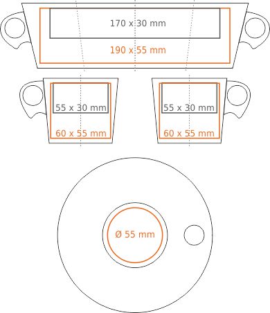 * W przypadku projektów wybiegających poza standardową powierzchnię nadruku prosimy o kontakt z działem handlowym.
