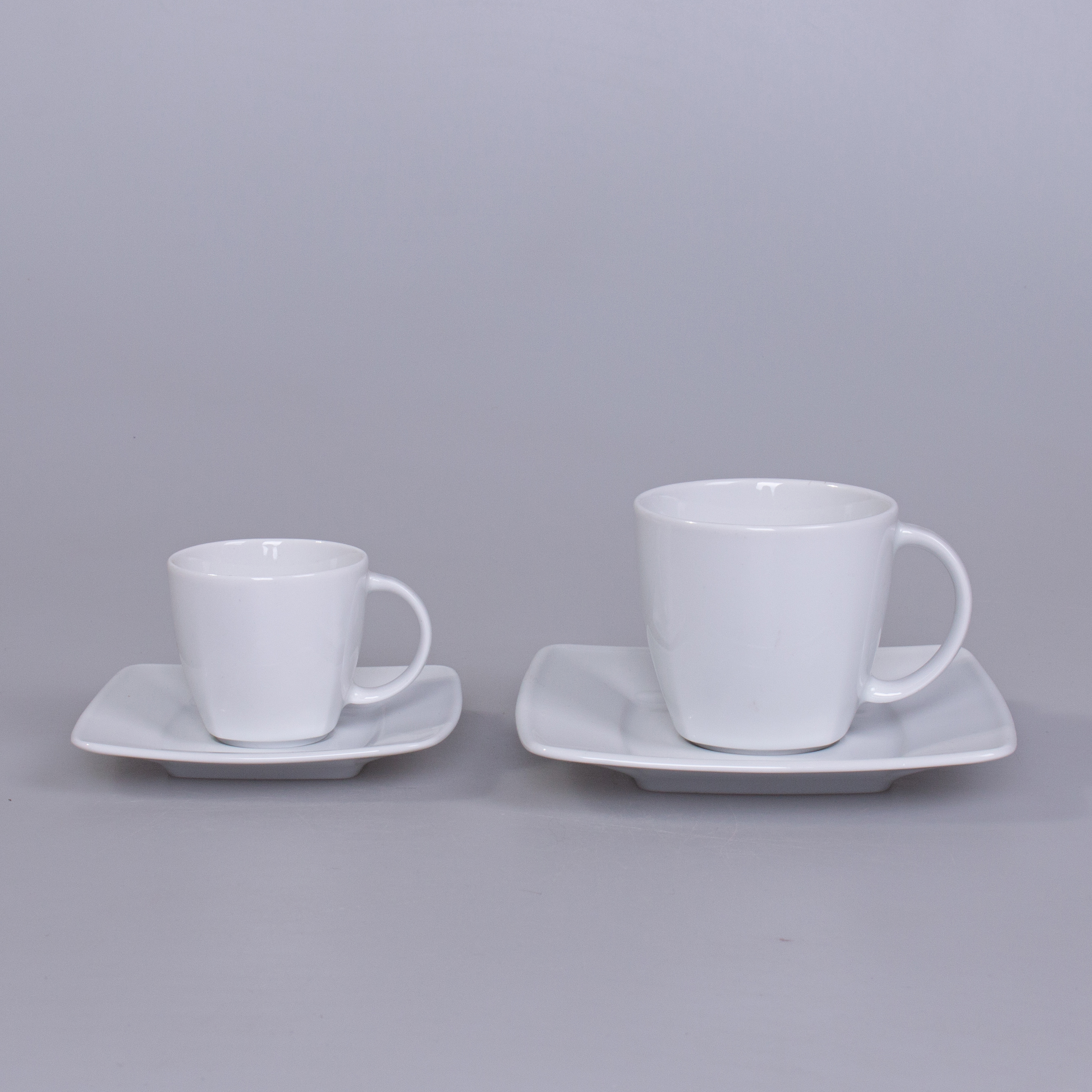 Porcelanowa filiżanka reklamowa dostępna w dwóch wersjach rozmiarowych. Cechą charakterystyczną tego fasonu są delikatne krawędzie widoczne w jego dolnej części.