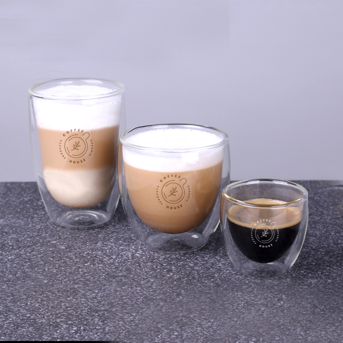 Niezwykłe szkło z podwójną ścianką. Popularny model szklanki w dwóch nowych rozmiarach. Dwuścienne szkło daje niesamowity efekt zawieszenia napoju w jego wnętrzu i wspaniale eksponuje zamieszczone na nim zdobienie.