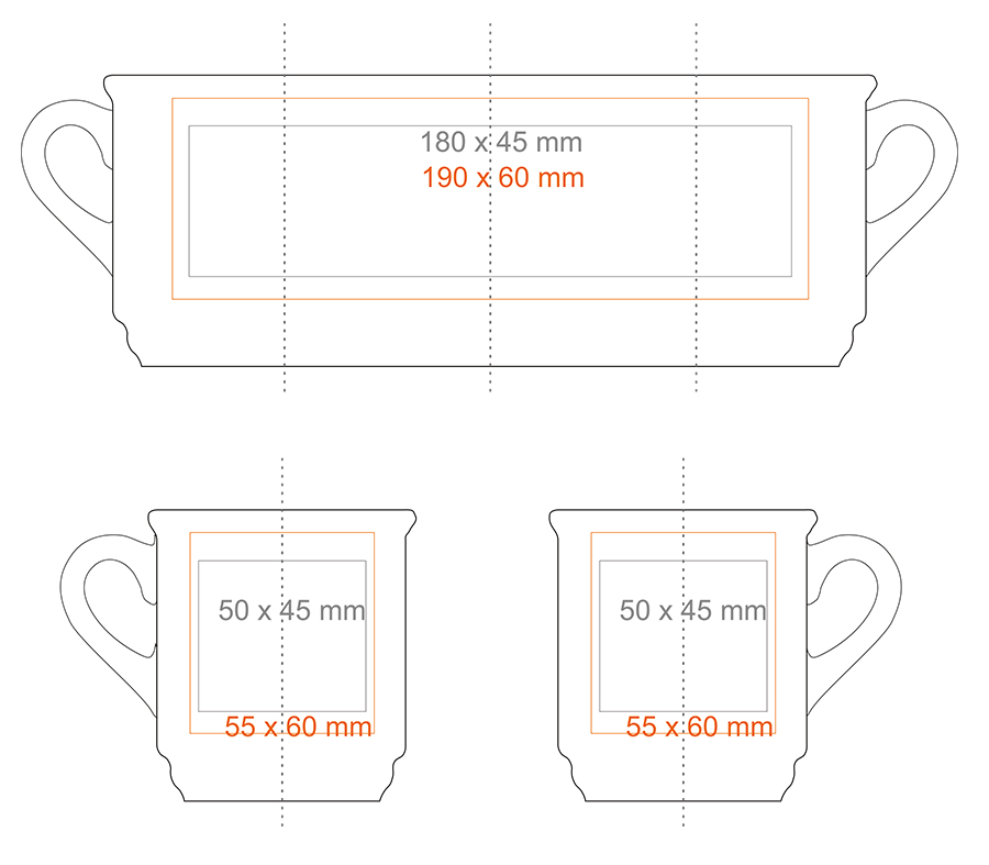 * W przypadku projektów wybiegających poza standardową powierzchnię nadruku prosimy o kontakt z działem handlowym.