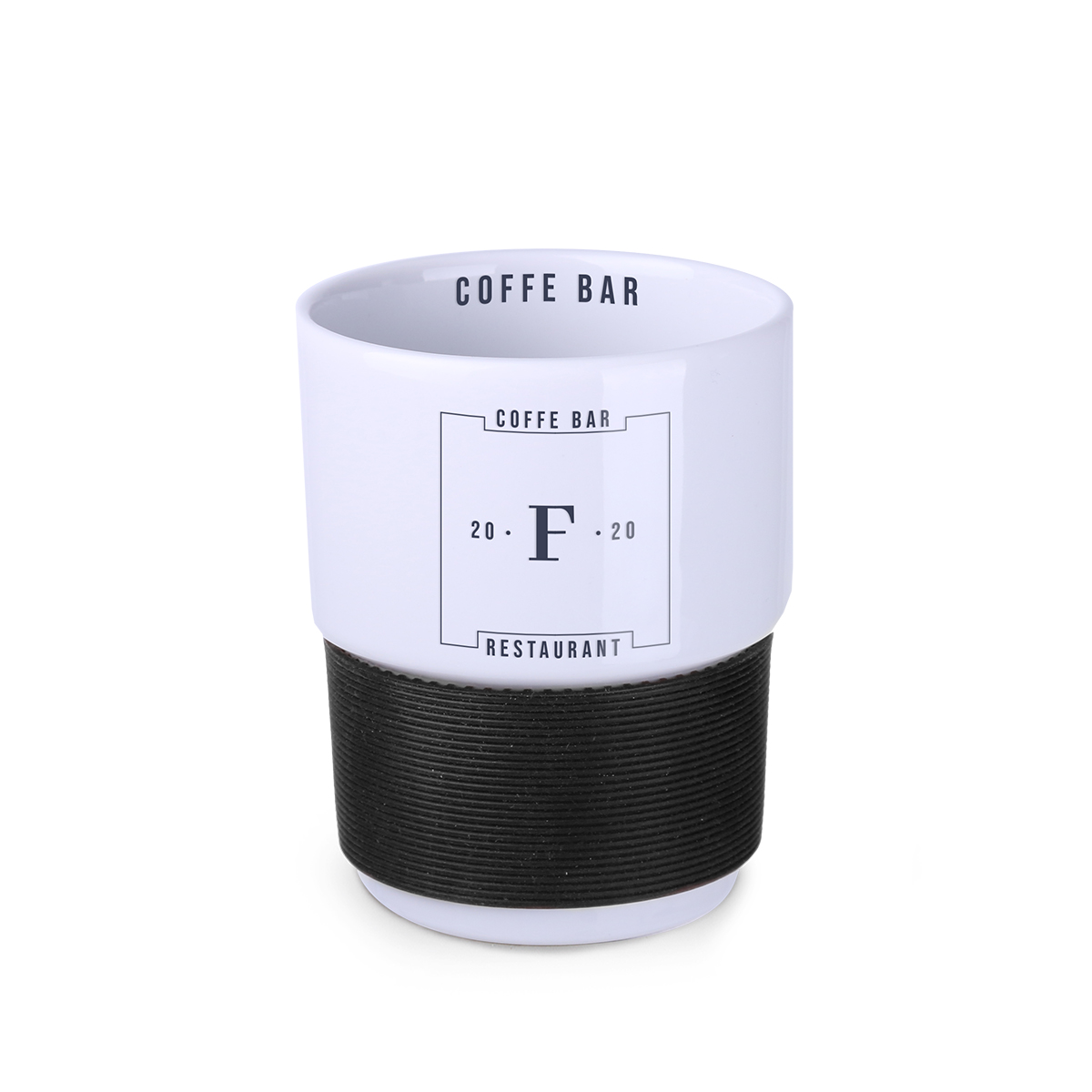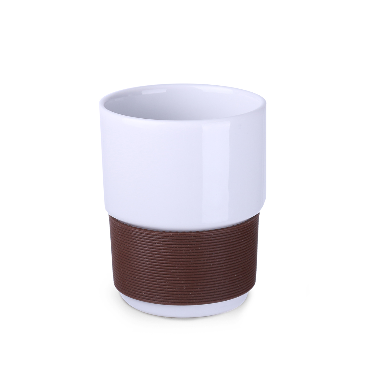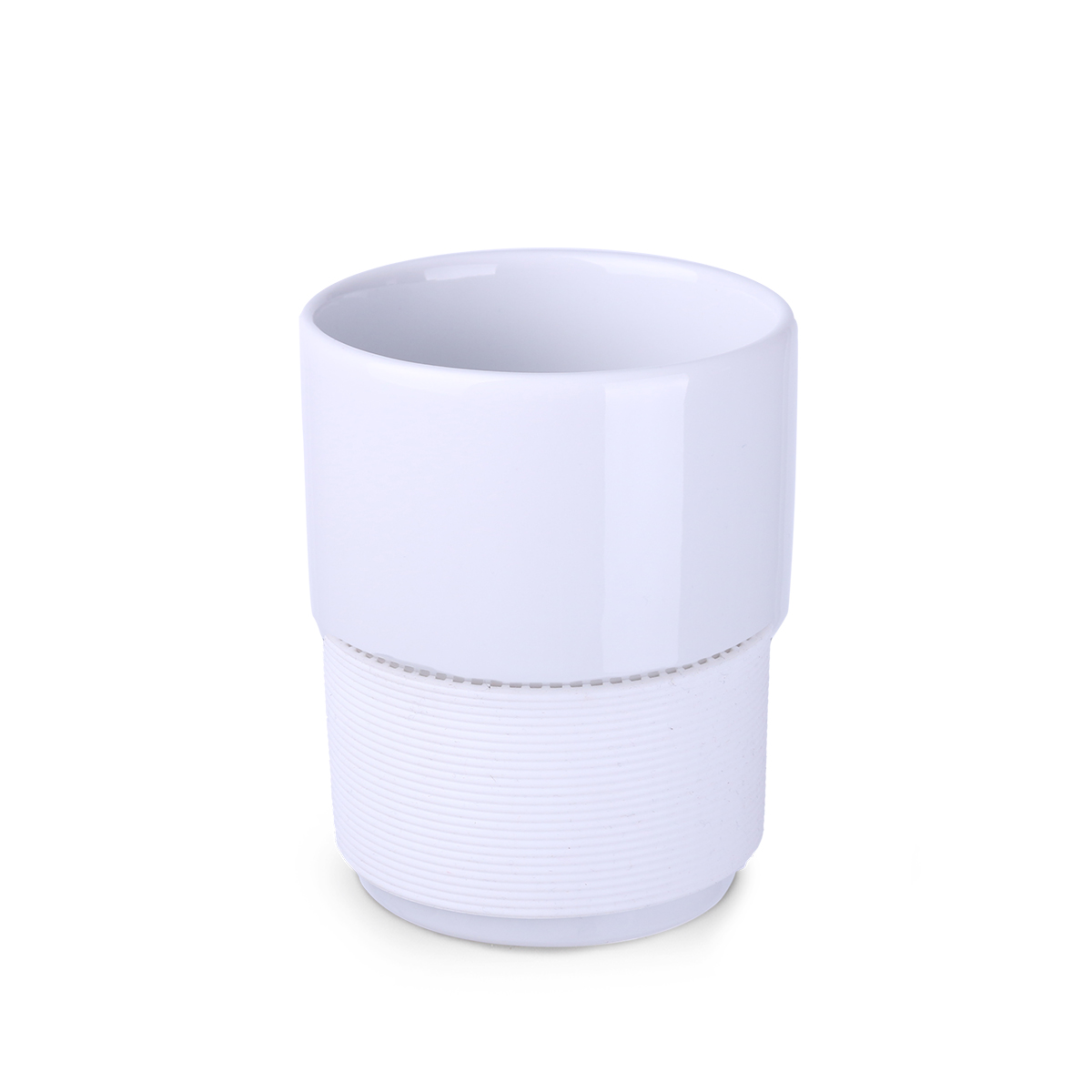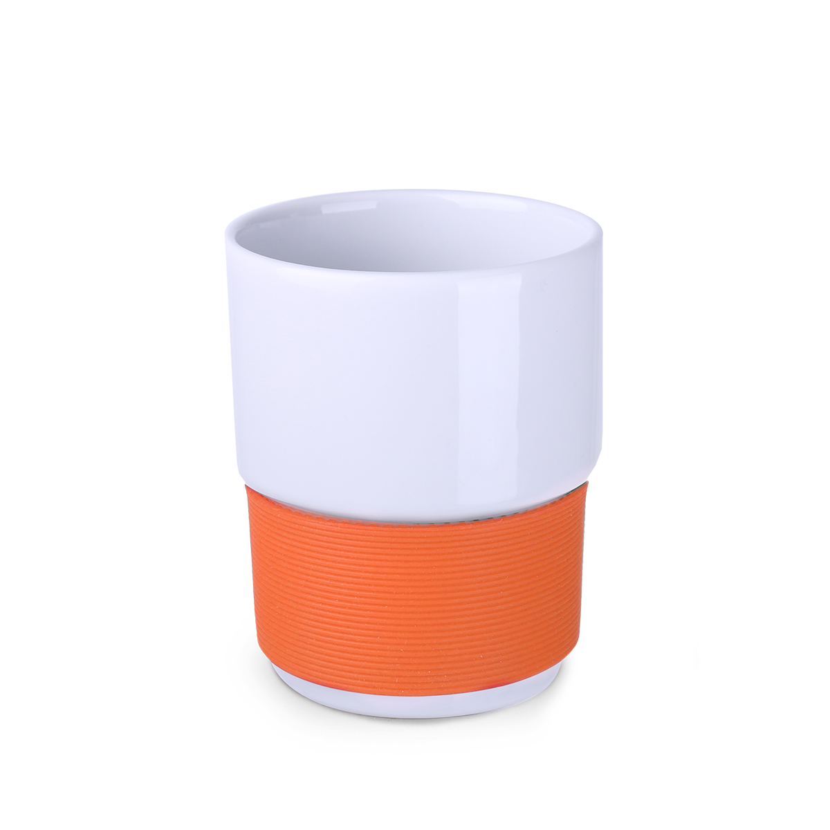 Średniej wielkości, ceramiczny kubek reklamowy bez uchwytu. Opaski o szerokości 40mm dostępne w 7 wersjach kolorystycznych: białej, pomarańczowej, czerwonej, zielonej, granatowej, brązowej i czarnej.