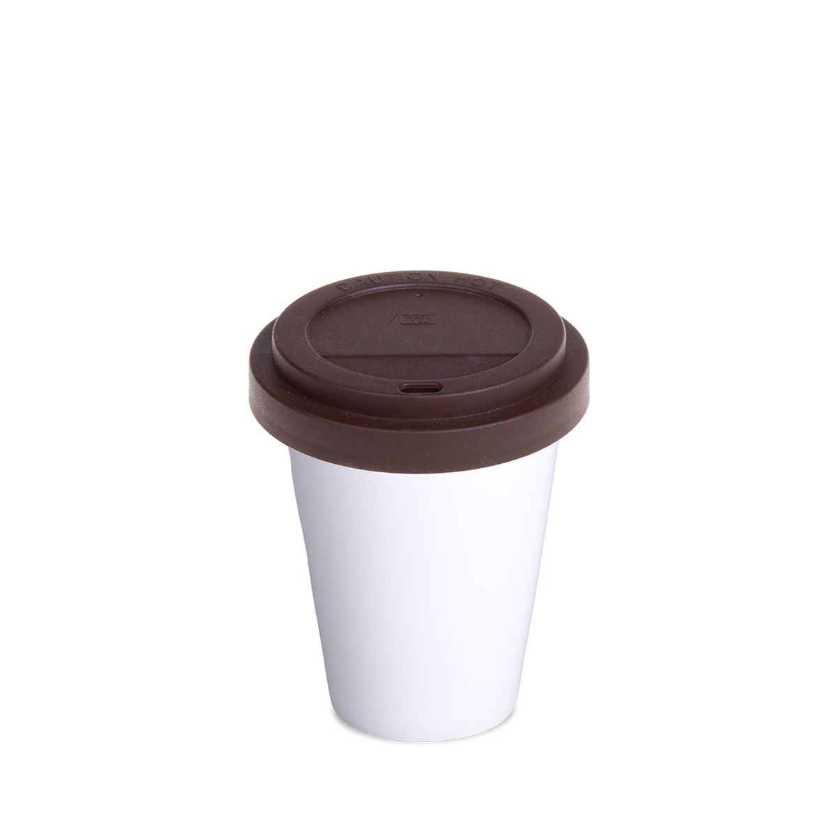 Praktyczny kubek porcelanowy z polimerową przykrywką chroniącą przed przypadkowym rozlaniem napoju. Dzięki rzadko spotykanej, wewnętrznej strukturze podwójnych ścianek z porcelany kubek ten charakteryzuje się podwyższonym poziomem izolacji termicznej. Korpus kubka dostępny w kolorze białym i satin black. Przykrywka dostępna w następujących kolorach: biały, pomarańczowy 021C, szary Cool Gray 7, granatowy 294C, brązowy 4695C, czarny, różowy 4064C, niebieski 2144C, eucalyptus 5493C, desert sand 2310C