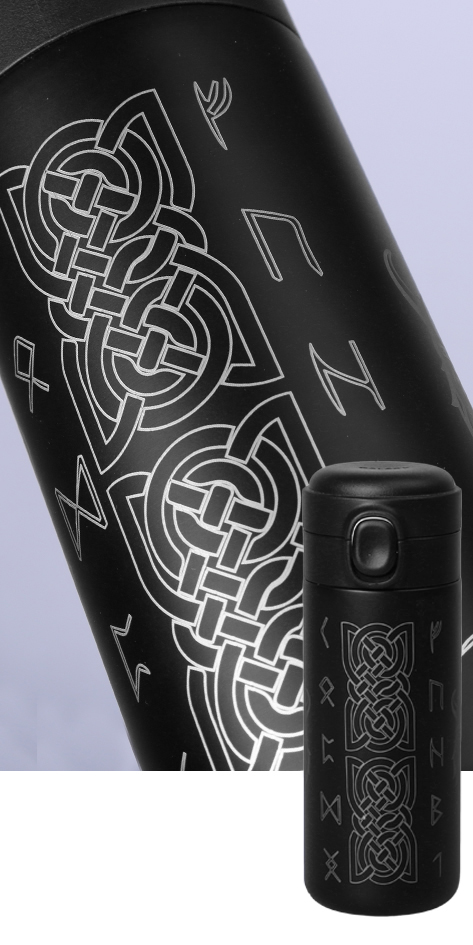 Grawer Laserowy wykonywany jest na metalowych korpusach kubków i butelek termicznych Galaxy, na produktach szklanych oraz na kubkach ceramicznych z kolorowym szkliwem.